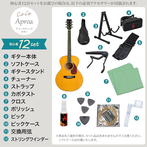 Eris. Aproa アコースティックギター 弾きやすい628mmスケール エリス アプロア (初心者12点セット, グロス/ヴィンテージナチュラル)の詳細・まとめ 画像