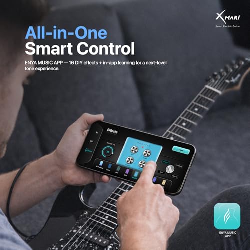 Enya XMARI スマートエレキギター - 内蔵DSPエフェクター・4プリセット・USB-C OTG録音機能・カスタムセラミックピックアップ搭載、カーボンファイバーボディ (ギグバッグ・ストラップ・ケーブル・ピック付属) 中間 画像